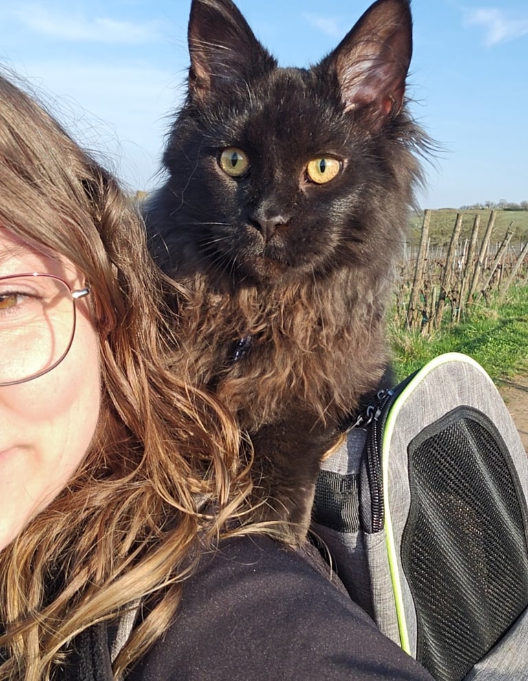 J'ai aussi été bénévole dans l'association les Fellnasen à Strueth (68) pendant deux ans, où j'ai promené les chiens, les ai brossé et j'en ai accompagné certains chez le vétérinaire. C'est d'ailleurs grâce à cette association que j'ai rencontré mon Falk, le chien de ma vie, qui a tout changé et qui m'a amenée à comprendre que le plus important pour moi était de donner mon temps et mon attention aux animaux comme s'ils étaient les miens.